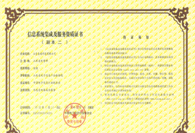 軟件企業(yè)認定證書 、電子與智能化工程專業(yè)承包二級資質(zhì)、安全生產(chǎn)許可證、涉密信息系統(tǒng)集成乙級 、安防工程設(shè)計、施工壹級、CCRC 信息安全服務(wù)資質(zhì)認證貳級、ITSS 信息技術(shù)服務(wù)標準證書叁級,通過了ISO質(zhì)量管理體系認證,信息技術(shù)服務(wù)管理體系認證、信息安全體系認證等。